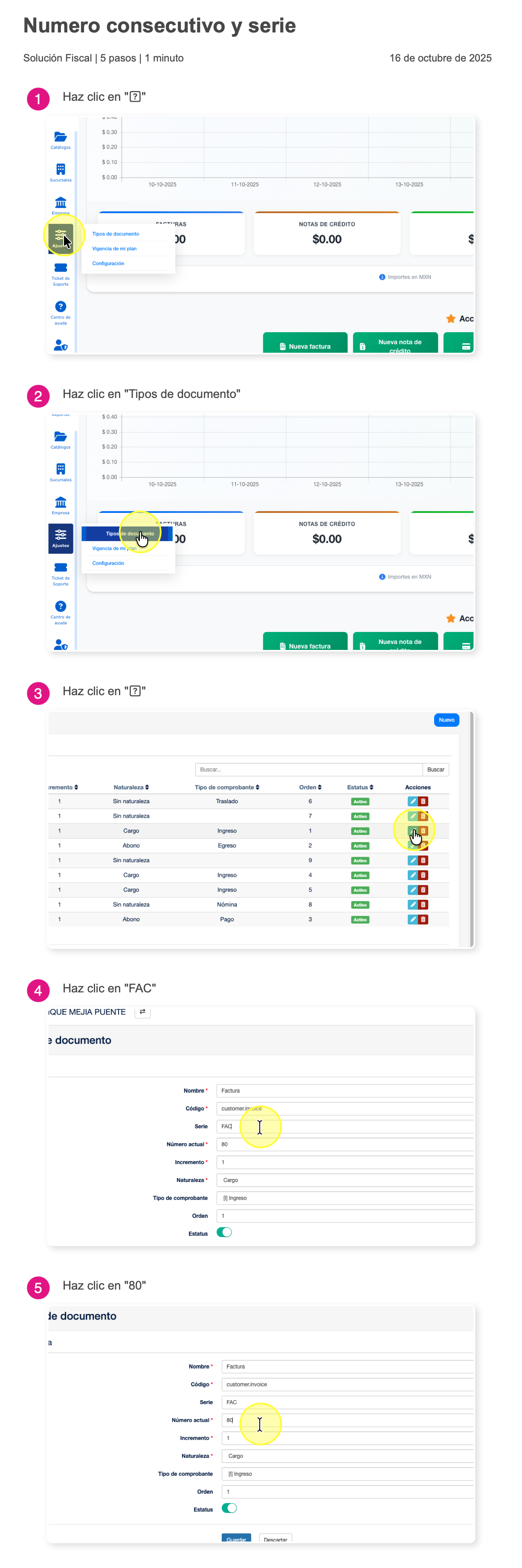 Si no configuraste tus folios consecutivos al crear tu cuenta en Solución Factura, no te preocupes. Puedes ajustarlos en cualquier momento siguiendo estos pasos: